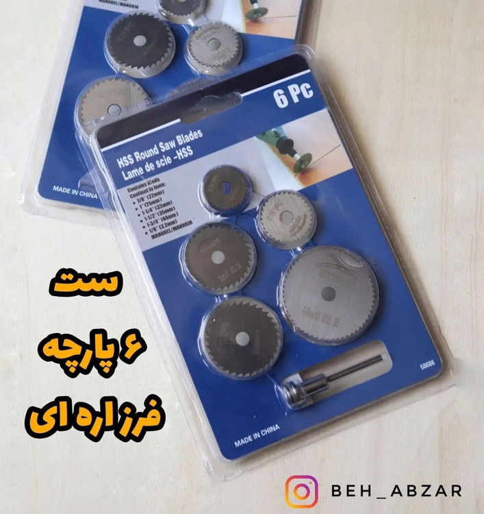 سایز تیغه های موجود در پک فرز اره ای به شرح زیر می باشد:
